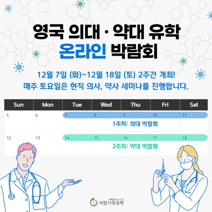 [박람회] 영국 의대 약대 유학 온라인 박람회_12/7 화요일~12/18 토요일 2주간 진행