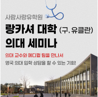[온라인 세미나] 세인트 조지 (SGU) 의대 세미나 | 보건복지부 인증 | 9월 입학 가능 / 6월 20일 오후 5시 ZOO… 페이지 정보 작성자 관리자 댓글 0건 조회 2,085회 작성일 24-06-12 10:57 목록 본문 이전글사람사랑 학생들과 함께하는 2024 썸머 그랜드 세미나! 24.08.12 다음글현직 영국 약사 2명의 영국 약대 세미나! (5월 18일 토 오전 11시~오후 1시 신논현역 WeWork) 24.05.13 Total 31건 1 페이지 31 랑카셔 대학교 (구, 유클란) 의대 세미나 N새글 작성자 관리자 작성일 09:57 조회 25 30 2025 Summer Grand 유학 세미나 8/26 (화) 10:00발표자: YJ Tak, JS Yun 수료과정: Oxford Internat.. 작성자 관리자 작성일 08-19 조회 773 29 영국 의전원 세미나 안내 ▶신청 바로가기◀ 작성자 관리자 작성일 07-07 조회 439 28 케임브리지 대학교 심리학 합격생 세미나 https://naver.me/F88UhXRH 작성자 관리자 작성일 03-28 조회 936 27 포츠머츠 약대 X 스포츠 세미나 안내 포츠머스 약대 X 스포츠 세미나 안내사람사랑유학원에서 준비한 포츠머스 약대, 스포츠 전공 세미나를 통해 학교에 .. 작성자 관리자 작성일 03-21 조회 474 26 파운데이션 웨비나|세인트 앤드류스, 더럼, 러프버러 스포츠, 브리스톨, 맨체스터 대학교 웨비나 신청 바로가기 작성자 관리자 작성일 03-17 조회 4687 25 노팅엄 약대 김동현 교수 세미나 노팅엄 약대가 궁금하다면?사람사랑유학원에서 준비한 노팅엄 약대 세미나에 참여하세요!💌 세미나 신청 👉 .. 작성자 관리자 작성일 03-06 조회 442 24 글라스고 대학교 정준영 교수 온라인 세미나 안내 < 글라스고 대학교 정준영 교수 온라인 세미나 안내 >사람사랑유학원에서 글라스고 대학교 정.. 작성자 관리자 작성일 03-05 조회 496 23 영국 의대 St. Andrews/Manchester졸업생 세미나 안내 영국 의대 졸업생 세미나 안내사람사랑유학원에서 영국 의대 졸업생의 세미나를 준비했습니다. 선배의 경험담을 들어보.. 작성자 관리자 작성일 02-24 조회 650 22 [부산 무료 세미나] 영국 의대, 약대 세미나 25년 3월 10일 월요일! 사람사랑유학원이 부산으로 갑니다 안녕하세요, 사람사랑유학원입니다! 영국 의대·약.. 작성자 관리자 작성일 02-21 조회 601 21 제주도에서 "옥스퍼드 대학생과 대화" | 초중고 학생 및 학부모 | 경험 공유 (9월 14일 오후 3시, … 옥스퍼드 대학생과 대화해보세요! 안녕하세요, 사람사랑유학원입니다.유학원을 운영하면서 좋은 점은, 훌륭한 학생들의 .. 작성자 관리자 작성일 08-26 조회 8020 20 사람사랑 학생들과 함께하는 2024 썸머 그랜드 세미나! 작성자 관리자 작성일 08-12 조회 2945 열람중 [온라인 세미나] 세인트 조지 (SGU) 의대 세미나 | 보건복지부 인증 | 9월 입학 가능 / 6월 20일… 작성자 관리자 작성일 06-12 조회 2086 18 현직 영국 약사 2명의 영국 약대 세미나! (5월 18일 토 오전 11시~오후 1시 신논현역 WeWork) 작성자 관리자 작성일 05-13 조회 2058 17 영국 의사 100% 취업! 아일랜드 골웨이 의대 세미나 & 인터뷰 데이 | 보건복지부인증의대  .. 작성자 관리자 작성일 04-19 조회 2830 열린1페이지 2페이지 3페이지 맨끝 검색 검색대상 제목내용제목+내용글쓴이글쓴이(코) 검색어 필수 검색 닫기