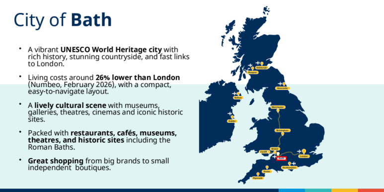 또한 Bath는 잉글랜드와 웨일즈에서 세 번째로 안전한 대학 도시로 소개되고 있어,